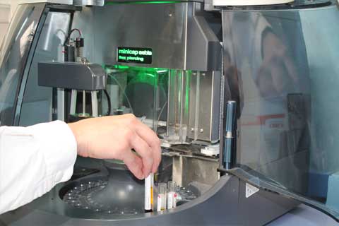 Per l`elettroforesi viene impiegato il sistema automatico MINICAP che permette la separazione delle proteine del siero umano attraverso un sistema di elettroforesi capillare. Tale elettroforesi offre il vantaggio di separazioni rapide e di una buona risoluzione.