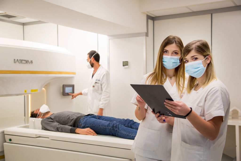 Più in dettaglio, la tecnica si fonda sull’uso di opportuni impulsi di radiofrequenza, che si determinano, tramite apposite “bobine”, quando un individuo è immerso in un campo magnetico statico, che variano l’orientamento di nuclei eccitati, ed in particolare dell’idrogeno.